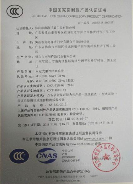 固定式柔性擋煙垂壁